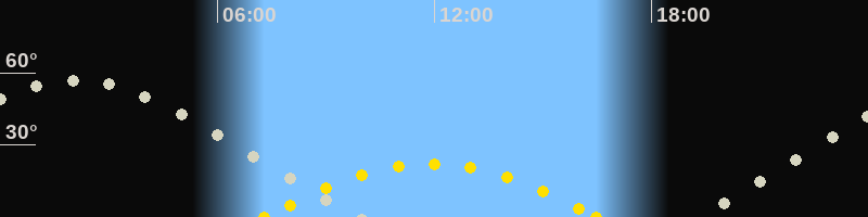 | Höchster Sonnenstand (Kulmination) | 11:54 Uhr (h = 22.2°) |