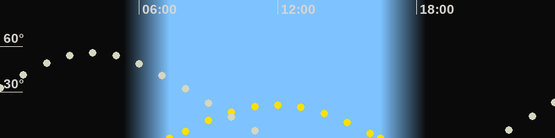 Höchster Sonnenstand (Kulmination)11:54 Uhr (h = 21.7°)