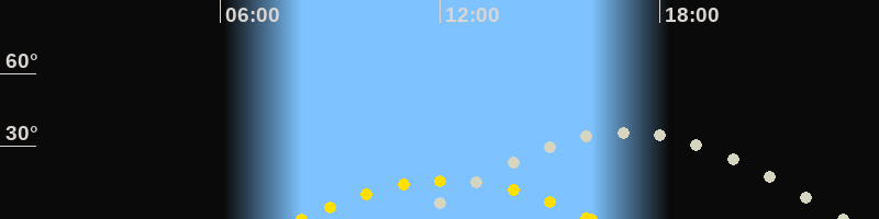| Höchster Sonnenstand (Kulmination) | 12:11 Uhr (h = 16°) |