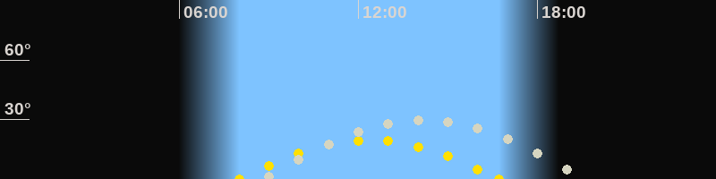 | Höchster Sonnenstand (Kulmination) | 12:21 Uhr (h = 19.7°) |