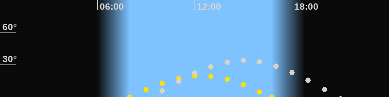 | Höchster Sonnenstand (Kulmination) | 12:22 Uhr (h = 19.9°) |