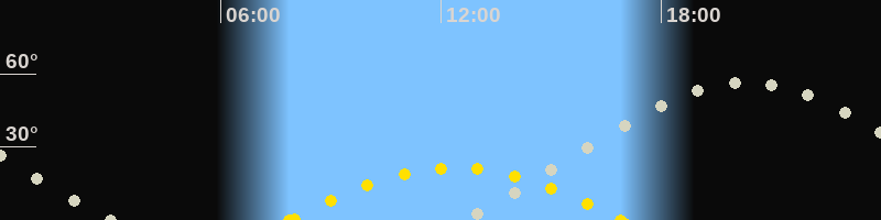 | Höchster Sonnenstand (Kulmination) | 12:23 Uhr (h = 21.4°) |