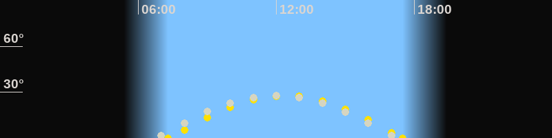 | Sonnenaufgang | 07:18 Uhr im Osten (αAz = 107.8°) |
