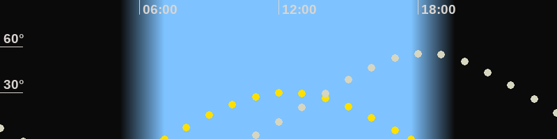 | Höchster Sonnenstand (Kulmination) | 12:23 Uhr (h = 30.3°) |