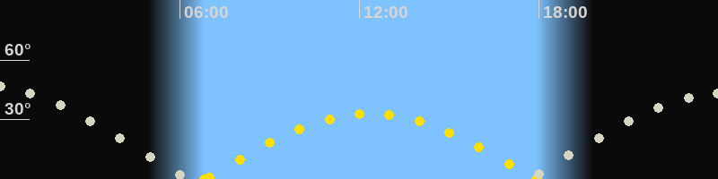 Höchster Sonnenstand (Kulmination)12:21 Uhr (h = 33°)