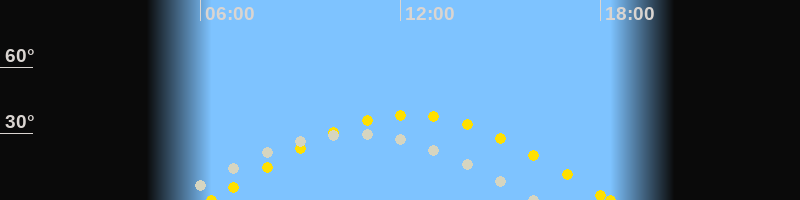 Höchster Sonnenstand (Kulmination)12:18 Uhr (h = 38.5°)