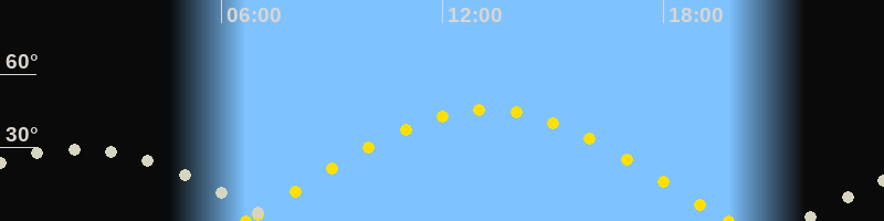 | Höchster Sonnenstand (Kulmination) | 13:12 Uhr (h = 45.5°) |