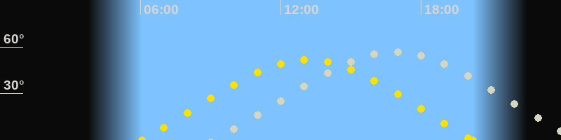 | Sonnenaufgang | 06:03 Uhr im Osten (αAz = 69.7°) |