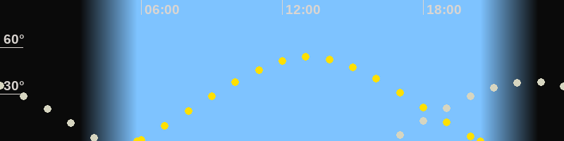 | Höchster Sonnenstand (Kulmination) | 13:07 Uhr (h = 53.9°) |