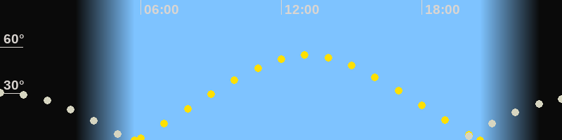 | Höchster Sonnenstand (Kulmination) | 13:07 Uhr (h = 54.8°) |
