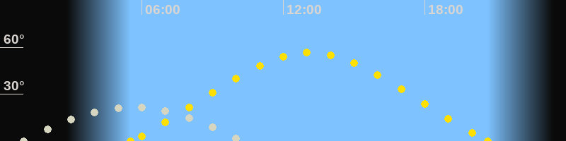 | Höchster Sonnenstand (Kulmination) | 13:06 Uhr (h = 56.7°) |