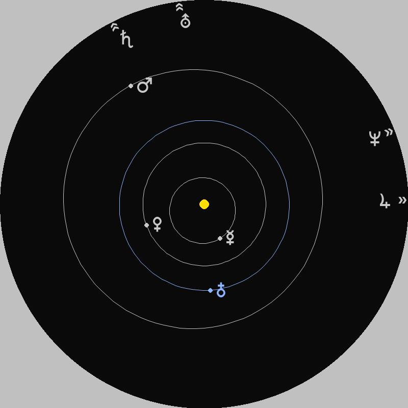 | f Merkur g Venus l Erde h Mars j Jupiter S Saturn A Uranus G Neptun |