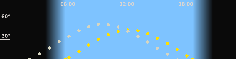 | Sonnenaufgang | 06:37 Uhr im Osten (αAz = 80.9°) |
