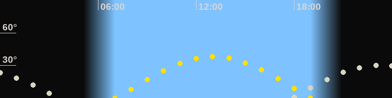 | Höchster Sonnenstand (Kulmination) | 13:01 Uhr (h = 38.3°) |