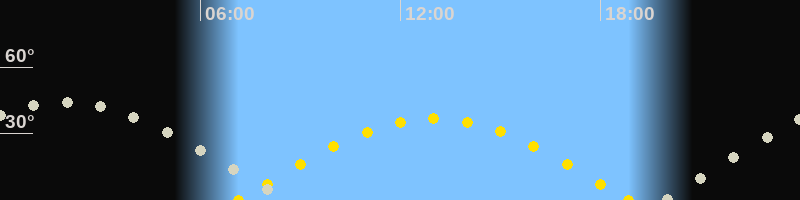 | Höchster Sonnenstand (Kulmination) | 13:00 Uhr (h = 36.7°) |