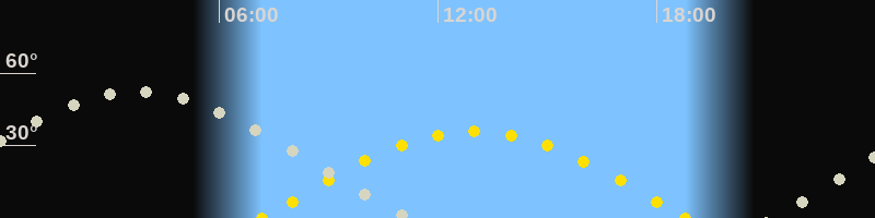 | Sonnenaufgang | 07:11 Uhr im Osten (αAz = 94.4°) |