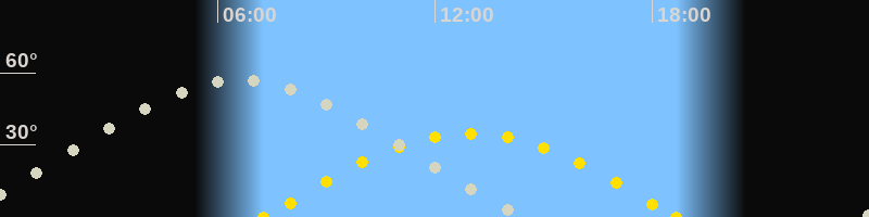 | Höchster Stand (Kulmination) | 06:33 Uhr (h=56.9°) |
