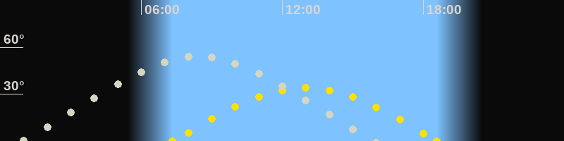 | Höchster Stand (Kulmination) | 08:23 Uhr (h=54.4°) |