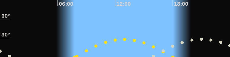 | Sonnenuntergang | 18:01 Uhr im Westen (αAz = 252.8°) |