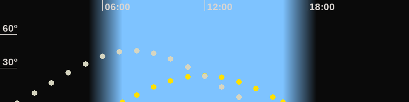 | Höchster Sonnenstand (Kulmination) | 11:53 Uhr (h = 23.5°) |