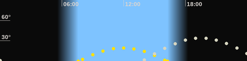 | Höchster Sonnenstand (Kulmination) | 11:55 Uhr (h = 19.5°) |