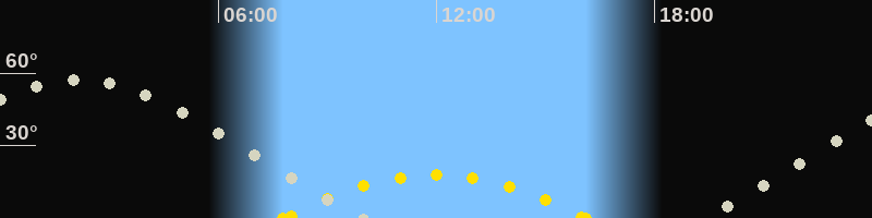 | Höchster Sonnenstand (Kulmination) | 11:58 Uhr (h = 17.9°) |