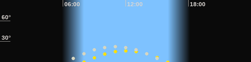 | Höchster Sonnenstand (Kulmination) | 12:02 Uhr (h = 16.4°) |