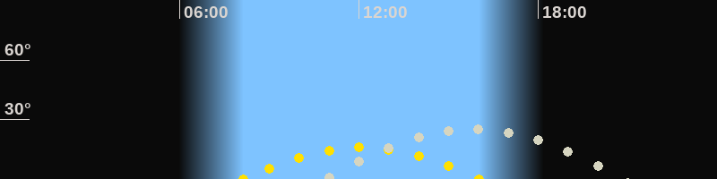 | Höchster Stand (Kulmination) | 15:45 Uhr (h=25.1°) |