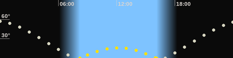 | Höchster Sonnenstand (Kulmination) | 12:10 Uhr (h = 15.9°) |