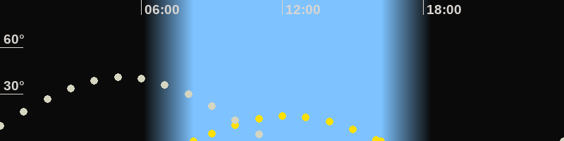 | Höchster Sonnenstand (Kulmination) | 12:13 Uhr (h = 16.2°) |