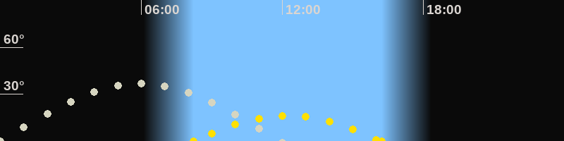 | Höchster Stand (Kulmination) | 06:00 Uhr (h=37°) |