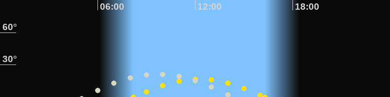 | Höchster Sonnenstand (Kulmination) | 12:15 Uhr (h = 16.8°) |