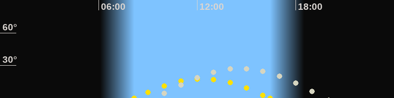 | Höchster Stand (Kulmination) | 14:32 Uhr (h=27.2°) |