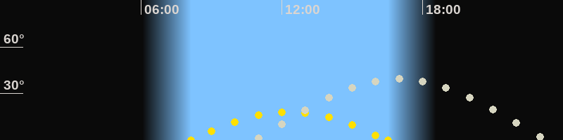 | Höchster Sonnenstand (Kulmination) | 12:19 Uhr (h = 18.2°) |