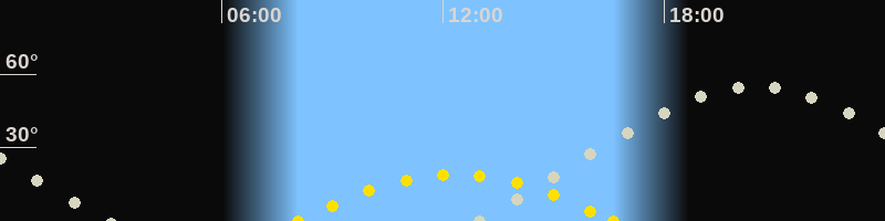 | Höchster Sonnenstand (Kulmination) | 12:20 Uhr (h = 19°) |