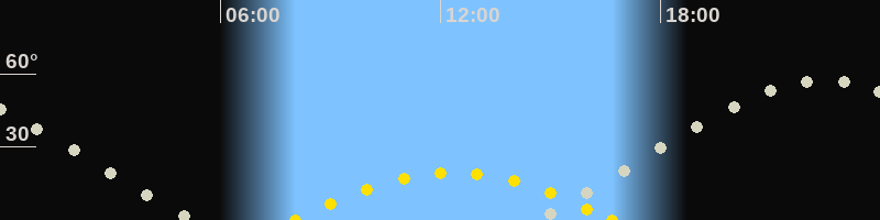 | Höchster Sonnenstand (Kulmination) | 12:21 Uhr (h = 19.4°) |