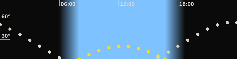 | Höchster Sonnenstand (Kulmination) | 12:21 Uhr (h = 19.6°) |