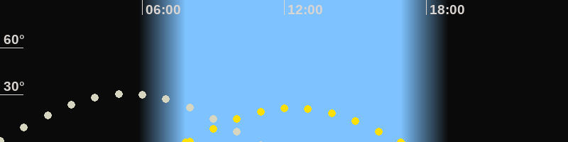 | Höchster Sonnenstand (Kulmination) | 12:23 Uhr (h = 21.7°) |