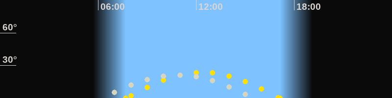 | Höchster Sonnenstand (Kulmination) | 12:24 Uhr (h = 23.7°) |