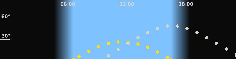 | Höchster Sonnenstand (Kulmination) | 12:24 Uhr (h = 26.3°) |