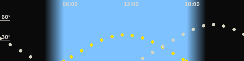 Höchster Sonnenstand (Kulmination)12:18 Uhr (h = 38.8°)