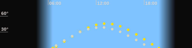 | Sonnenaufgang | 06:35 Uhr im Osten (αAz = 78.6°) |