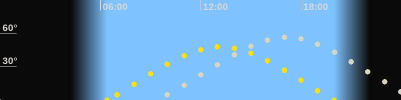 | Höchster Sonnenstand (Kulmination) | 13:11 Uhr (h = 48°) |
