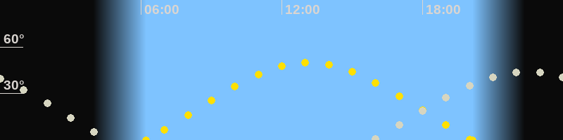 | Sonnenaufgang | 06:12 Uhr im Osten (αAz = 72.1°) |