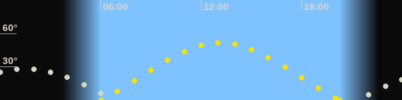 | Sonnenaufgang | 06:01 Uhr im Osten (αAz = 69.3°) |