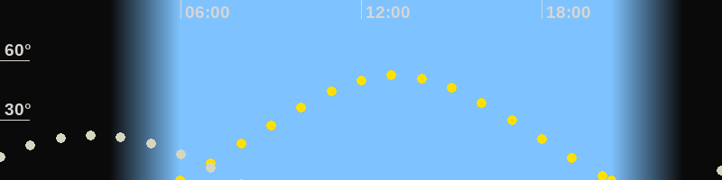 | Sonnenaufgang | 05:58 Uhr im Osten (αAz = 68.2°) |