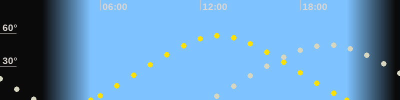| Höchster Sonnenstand (Kulmination) | 13:06 Uhr (h = 57.9°) |