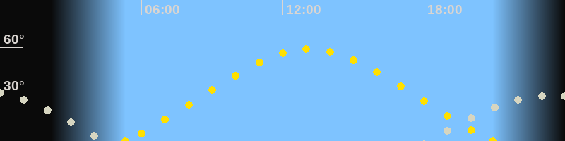 | Höchster Sonnenstand (Kulmination) | 13:06 Uhr (h = 59.1°) |