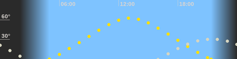 | Höchster Sonnenstand (Kulmination) | 13:10 Uhr (h = 62.6°) |