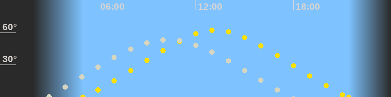 | Höchster Sonnenstand (Kulmination) | 13:14 Uhr (h = 62.3°) |
